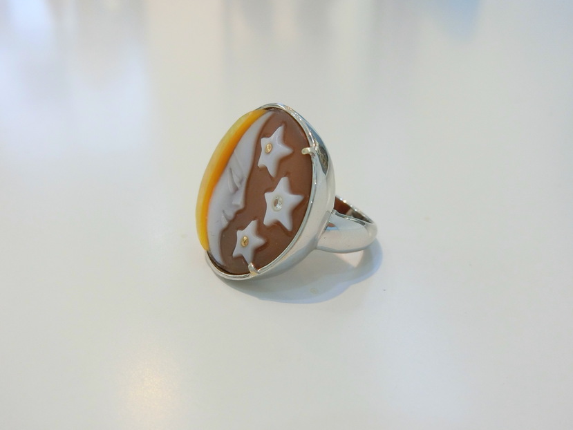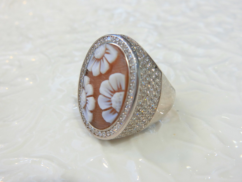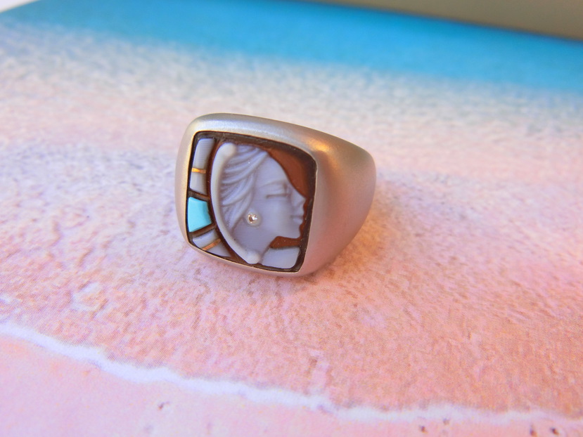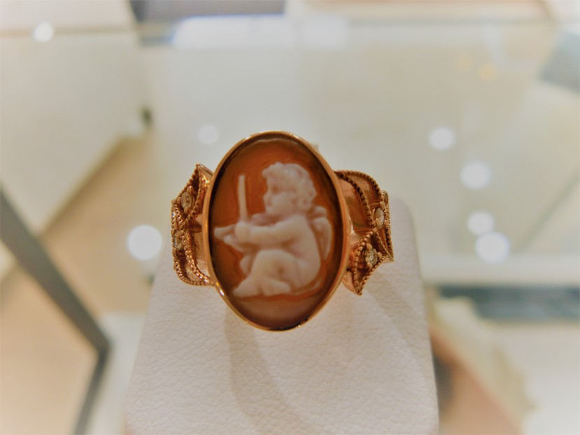カメオ展西条本店イベント shell cameo special shop それは世界にひとつしかない海からの贈り物 カメオとは? 宝石や石などに浮き彫りを施した芸術品のことをカメオと呼びます。 カブト貝やマンボ貝などの貝殻で作られたものを“シェルカメオ”メノーやトルマリン、トルコ石などで作られたものを“ストーンカメオ”と呼びます。 原貝となる貝は、主にカリブ海や東アフリカ沿岸で採取され、 シェルカメオのほとんどの生産が南イタリア最大の都市ナポリにほど近い 「トーレ・デル・グレコ」という街で行われています。 貝は海で生息する自然の生き物ですので、その形や色も様々です。 それぞれ異なった貝を一つの芸術的な宝石にするため、 その工程は一つ一つ全て手作業で行われます。 当店はロザリオ・メンネッラ氏と独占契約をしています。 生後間もなくトーレ・デル・グレコに移りこの地で育つ。 幼い頃よりいろいろな分野の芸術に特別な興味や関心を抱き、絵を描いたり彫刻を彫ったり素晴らしい作品を自分の目で確かめながら様々なものを吸収した。 14才の時にトーレ・デル・グレコの美術学校に通い始め、迷わずカメオの道に進んだ。学校で基本的な技術やカメオの素材についての知識を学びなおかつジュエリーのデザインも学んだ。カメオ彫刻の腕を磨くと同時に常にオリジナリティーを追及してクラッシックなスタイルと色(トルコ石、サンゴ)などの素材と融合して彼、自身のオリジナルカメオが誕生した。 彼のカメオは従来のカメオと違いファッションと一体化しやすいと多くのファンを生み出している。これからさらにクリエイティブな能力を発揮していくことだろう。 work 作業風景 Favorite スタッフも愛用 身に着ける芸術 カメオの魅力 カメオは身に着けられる絵画であり、天然素材の温もりと、緻密で繊細な美しさを感じさせられる素晴らしい芸術品です。普段のラフなスタイルにもカメオは素敵に身に着けられます。クラシカルでお上品なイメージが強いと、普段使いには抵抗があるかもしれませんが、たとえば薔薇のモチーフのカメオに皮ひもを通してジーパン&Tシャツスタイルに身に着けるだけで、断然オシャレ度がアップします。私にも経験がありますが、カメオを身に着けている時に限って周囲の視線を首元にビンビン感じます。カメオは2つと同じものはありません。感性や心に響く、とっておきのオンリーワンのカメオに出会えたら素敵ですね。 product 商品 リング