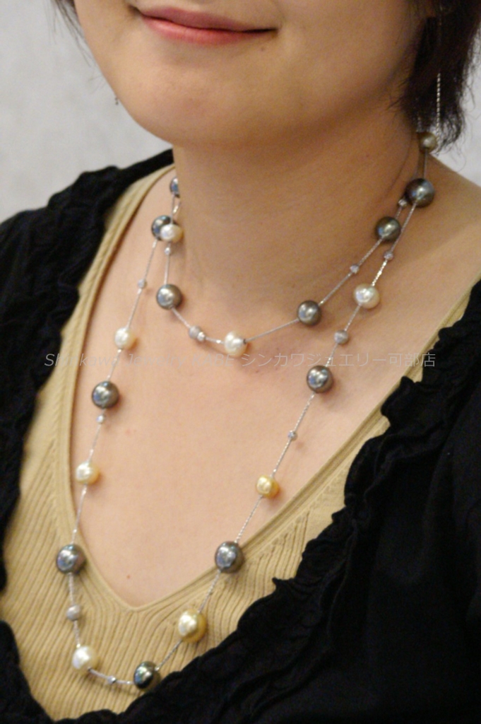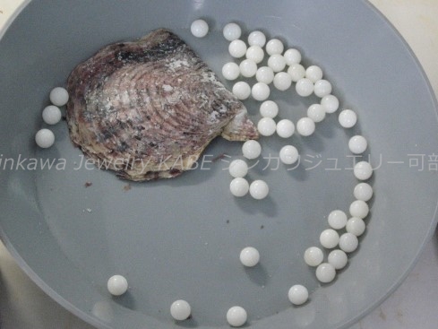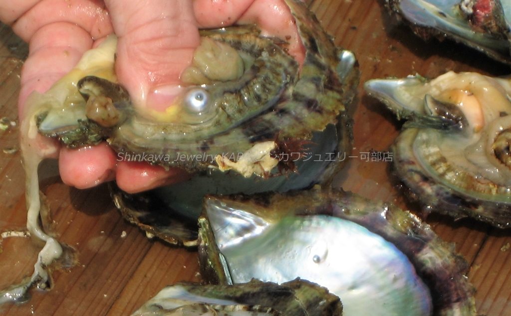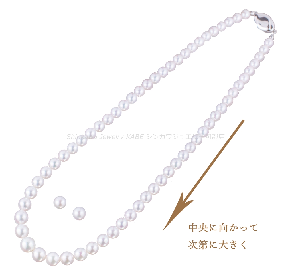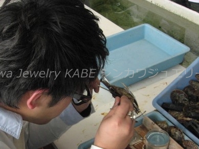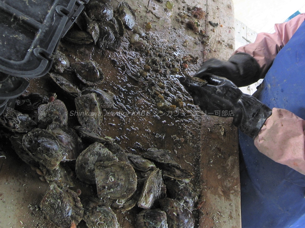 新川ジュエリー可部店 真珠 真珠の歴史 真珠の種類 真珠が出来るまで 真珠の選び方 真珠の特別呼称 真珠のコーディネート 真珠のお手入れ 2点セット 7大特典 真珠 真珠の石言葉「健康、純粋、長寿、富」 6月の誕生石のひとつ 真珠の歴史 「世界のどこにあっても、まさしく至高と称えられるもの、それは真珠である」古代ローマの博物学者プリニウスの言葉真珠の歴史は古く、数千年前から中国、インド、ペルシャなどの各地で発見され、時の権力者に献上されたり、当時の産業として栄えていました。日本でも魏志倭人伝や古事記にみられるように、真珠との歴史は長く、正倉院の宝物殿には1200年前の真珠が残っています。真珠との逸話も古来より世界各地にあり、アレキサンダー大王、カエサル、クレオパトラ、マルコポーロ、西太后や英国のエリザベス女王など、真珠を愛した人物は枚挙に暇がありません。そして近代、20世紀前半にココ・シャネルが真珠のコレクションを発表し、その魅力が世界中に広まり、ファッションの進化とともに真珠のコーディネイトも多様化しました。現在ではカジュアルなシーンにも多く取り入れられ、まさにオールマイティな装いが楽しめるジュエリーとなりました。 真珠の種類 アコヤ真珠 和珠、アコヤパールとも呼ばれます 日本で主に養殖されている真珠でアコヤ貝から出来ます。白系からゴールド系の色があり、3~10mmまでの球形です。日本で知られている一般的な真珠で、他の真珠に比べてきめの細かい光沢を放ちます。 黒蝶貝真珠 クロチョウガイシンジュ、タヒチパール タヒチを中心としたポリネシアが主な生産地。黒を主に、緑、赤、紫、茶などの色を含む7~18mm程の大きさで、アコヤ真珠に比べて変形が多く、バリエーションが楽しめます。 白蝶貝真珠 シロチョウガイシンジュ オーストラリア、インドネシア、フィリピン、ミャンマーなどが主な生産地です。真珠内側の真珠層によって、シルバー系とゴールド系の色があり、8~20mm程の大きさです。真珠層の巻きが厚いため真珠の中では丈夫で、普段使いもしやすいです。 淡水真珠 中国や日本が主な生産地で、2~15mm以上のものまでサイズや形が豊富です。色も白、オレンジ、紫などあります。比較的リーズナブルな値段で市場に出ています。その他に半球状のマベパールやアワビ真珠、コンクパールなどの種類もあります。 真珠が出来るまで 現代のような養殖技術が発展するまで、宝石としての真珠はすべて天然真珠でした。真珠を作ることのできる貝が、たまたま小石などの異物を体に取り込み、それを無害化するために自身の真珠層で覆い、さらにたまたまそれを発見したものが、古来の真珠でした。ペルシャ湾では近代まで天然真珠産業が盛んでしたが、日本で養殖技術が確立されると主産地は日本に移り、世界のトップシェアを誇るようになります。その裏には技術者、生産者、加工業者など多くの真珠産業に携わる人々の地道な努力がありました。次にアコヤ真珠が生まれてくるまでを大まかに記します。まず人工採苗などでアコヤ貝の稚貝を育てます。成長して真珠を育ませる大きさになるまで2~3年かかります。2019年に愛媛、三重をはじめとするアコヤ貝の主産地が、環境変化により稚貝のほとんどが死んでしまうというダメージを負ったことが、海外の真珠人気と重なって、現在の真珠高騰の主要因となっています。 ほどよく成長したアコヤ貝を選別し、挿核手術をするために貝の整理活動を鈍らせます。人間でいう麻酔の作業です。約1か月かけて冬眠状態にします。 黄色の容器に入っているのがドブ貝といわれる外殻の厚い貝片です。これを核としてアコヤ貝に真珠層を巻いてもらいます。出来上がりの真珠の大きさを想定して、球にカットします。 外套膜をカットして、作業しやすいように染色しておきます。この丸い核と、貝の外套膜を約3㎜にカットしたピースと呼ばれるものを一緒に貝に入れます。7mm以上の真珠はひとつの貝にひとつの核しか挿入できません。貝の負担が大きくなるからです。この挿核は人間でいう生体間移植、再生手術です。核とピースの密着具合や、素早い作業などが必要で、熟練の技術が求められます。 挿核手術後は、潮流の弱い場所で約1か月ほど傷を回復させるための養生をします。リハビリ期間です。貝が死んだりすることを防ぎ、真珠の品質向上のために必要です。 その後、餌が豊富で貝が活発に活動できるような漁場へ移動させます。1~2年の間、定期的に引き上げて貝掃除などの手入れをしながら育てます。 貝に付いたフジツボやカキなどを取り除くため丁寧に作業します。ゴカイなど貝の内部に侵入してくる生物は、高濃度の塩水に漬けて駆除します。このような作業をしながら晩秋から冬にかけての浜上げを待ちます。水温の低い冬季には、真珠のテリが向上する条件が整っているので、それを迎えて収穫です。 実際には、真珠を傷つけないミキサーにいれて真