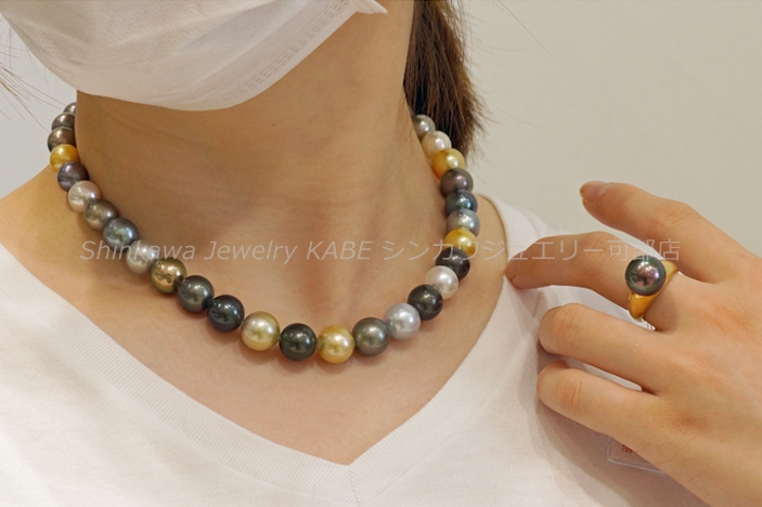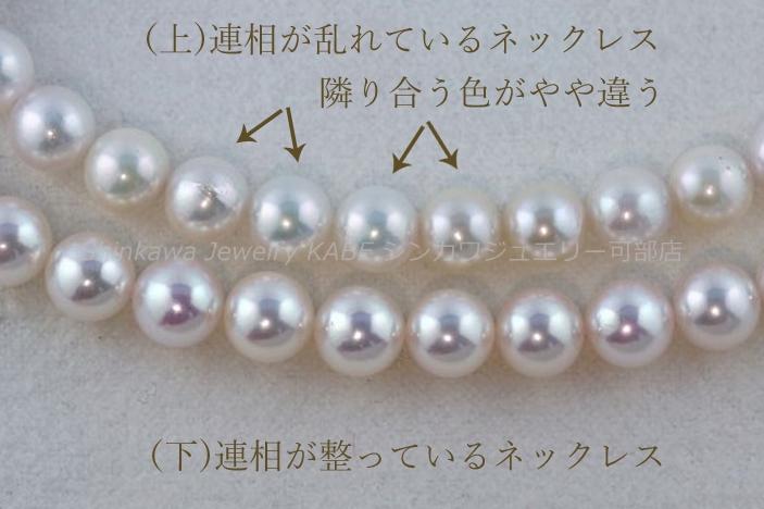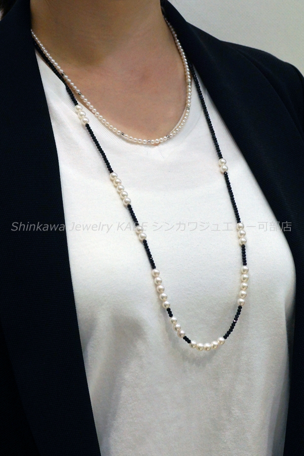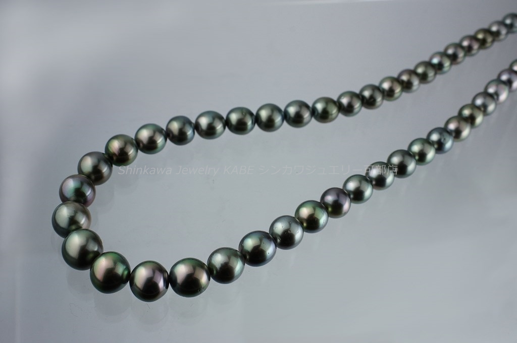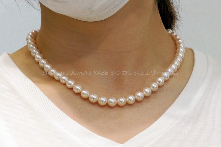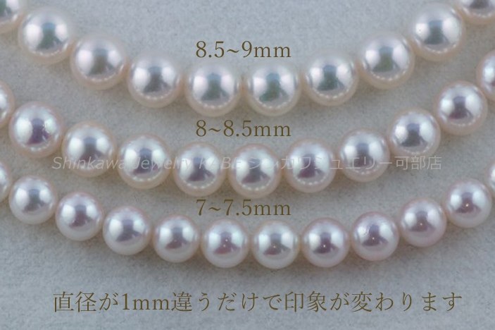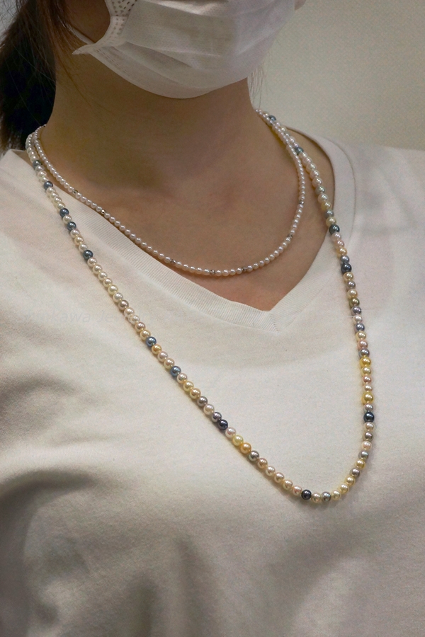 新川ジュエリー可部店 真珠 真珠の歴史 真珠の種類 真珠が出来るまで 真珠の選び方 真珠の特別呼称 真珠のコーディネート 真珠のお手入れ 2点セット 7大特典 真珠 真珠の石言葉「健康、純粋、長寿、富」 6月の誕生石のひとつ 真珠の歴史 「世界のどこにあっても、まさしく至高と称えられるもの、それは真珠である」古代ローマの博物学者プリニウスの言葉真珠の歴史は古く、数千年前から中国、インド、ペルシャなどの各地で発見され、時の権力者に献上されたり、当時の産業として栄えていました。日本でも魏志倭人伝や古事記にみられるように、真珠との歴史は長く、正倉院の宝物殿には1200年前の真珠が残っています。真珠との逸話も古来より世界各地にあり、アレキサンダー大王、カエサル、クレオパトラ、マルコポーロ、西太后や英国のエリザベス女王など、真珠を愛した人物は枚挙に暇がありません。そして近代、20世紀前半にココ・シャネルが真珠のコレクションを発表し、その魅力が世界中に広まり、ファッションの進化とともに真珠のコーディネイトも多様化しました。現在ではカジュアルなシーンにも多く取り入れられ、まさにオールマイティな装いが楽しめるジュエリーとなりました。 真珠の種類 アコヤ真珠 和珠、アコヤパールとも呼ばれます 日本で主に養殖されている真珠でアコヤ貝から出来ます。白系からゴールド系の色があり、3~10mmまでの球形です。日本で知られている一般的な真珠で、他の真珠に比べてきめの細かい光沢を放ちます。 黒蝶貝真珠 クロチョウガイシンジュ、タヒチパール タヒチを中心としたポリネシアが主な生産地。黒を主に、緑、赤、紫、茶などの色を含む7~18mm程の大きさで、アコヤ真珠に比べて変形が多く、バリエーションが楽しめます。 白蝶貝真珠 シロチョウガイシンジュ オーストラリア、インドネシア、フィリピン、ミャンマーなどが主な生産地です。真珠内側の真珠層によって、シルバー系とゴールド系の色があり、8~20mm程の大きさです。真珠層の巻きが厚いため真珠の中では丈夫で、普段使いもしやすいです。 淡水真珠 中国や日本が主な生産地で、2~15mm以上のものまでサイズや形が豊富です。色も白、オレンジ、紫などあります。比較的リーズナブルな値段で市場に出ています。その他に半球状のマベパールやアワビ真珠、コンクパールなどの種類もあります。 真珠が出来るまで 現代のような養殖技術が発展するまで、宝石としての真珠はすべて天然真珠でした。真珠を作ることのできる貝が、たまたま小石などの異物を体に取り込み、それを無害化するために自身の真珠層で覆い、さらにたまたまそれを発見したものが、古来の真珠でした。ペルシャ湾では近代まで天然真珠産業が盛んでしたが、日本で養殖技術が確立されると主産地は日本に移り、世界のトップシェアを誇るようになります。その裏には技術者、生産者、加工業者など多くの真珠産業に携わる人々の地道な努力がありました。次にアコヤ真珠が生まれてくるまでを大まかに記します。まず人工採苗などでアコヤ貝の稚貝を育てます。成長して真珠を育ませる大きさになるまで2~3年かかります。2019年に愛媛、三重をはじめとするアコヤ貝の主産地が、環境変化により稚貝のほとんどが死んでしまうというダメージを負ったことが、海外の真珠人気と重なって、現在の真珠高騰の主要因となっています。 ほどよく成長したアコヤ貝を選別し、挿核手術をするために貝の整理活動を鈍らせます。人間でいう麻酔の作業です。約1か月かけて冬眠状態にします。 黄色の容器に入っているのがドブ貝といわれる外殻の厚い貝片です。これを核としてアコヤ貝に真珠層を巻いてもらいます。出来上がりの真珠の大きさを想定して、球にカットします。 外套膜をカットして、作業しやすいように染色しておきます。この丸い核と、貝の外套膜を約3㎜にカットしたピースと呼ばれるものを一緒に貝に入れます。7mm以上の真珠はひとつの貝にひとつの核しか挿入できません。貝の負担が大きくなるからです。この挿核は人間でいう生体間移植、再生手術です。核とピースの密着具合や、素早い作業などが必要で、熟練の技術が求められます。 挿核手術後は、潮流の弱い場所で約1か月ほど傷を回復させるための養生をします。リハビリ期間です。貝が死んだりすることを防ぎ、真珠の品質向上のために必要です。 その後、餌が豊富で貝が活発に活動できるような漁場へ移動させます。1~2年の間、定期的に引き上げて貝掃除などの手入れをしながら育てます。 貝に付いたフジツボやカキなどを取り除くため丁寧に作業します。ゴカイなど貝の内部に侵入してくる生物は、高濃度の塩水に漬けて駆除します。このような作業をしながら晩秋から冬にかけての浜上げを待ちます。水温の低い冬季には、真珠のテリが向上する条件が整っているので、それを迎えて収穫です。 実際には、真珠を傷つけないミキサーにいれて真