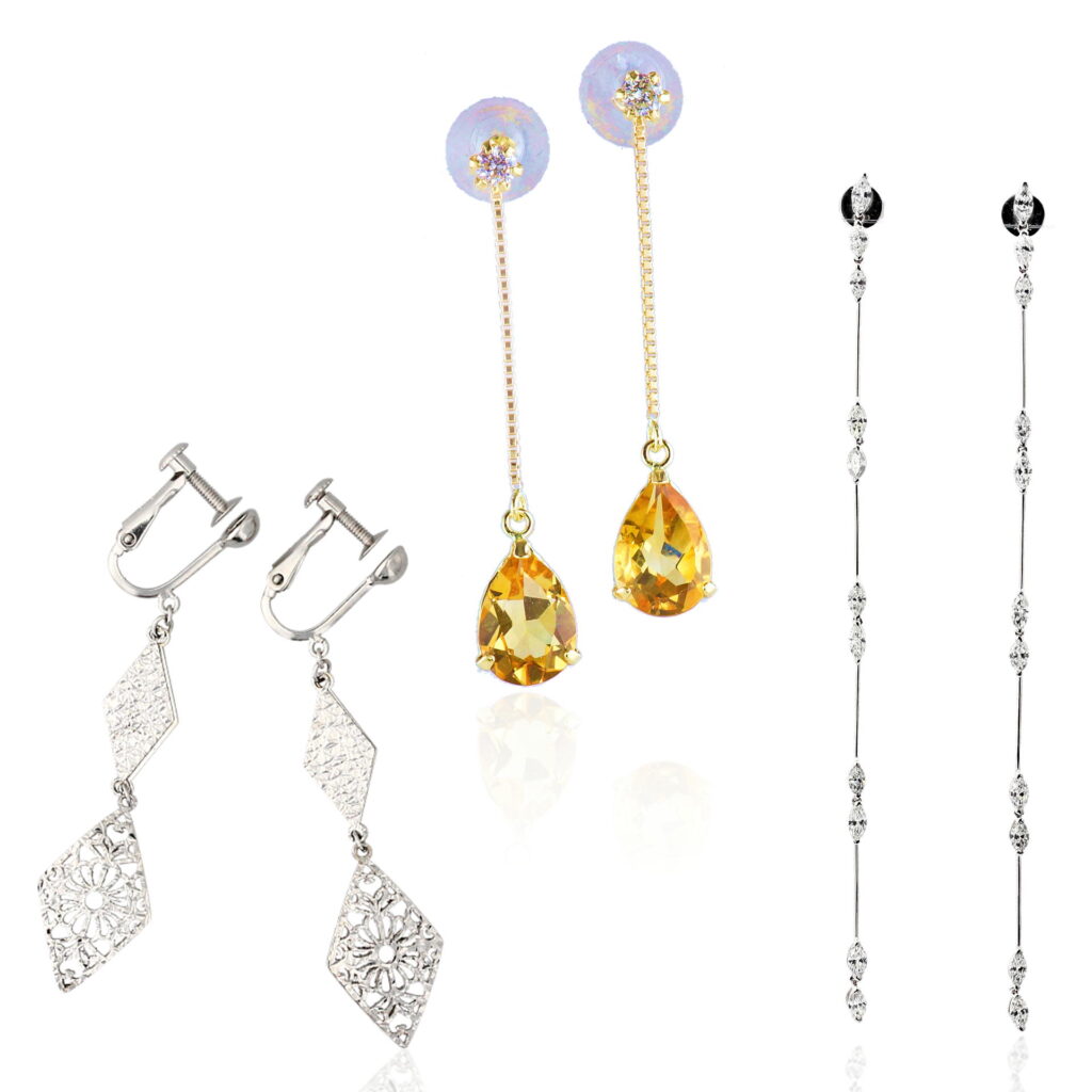 様々なデザインがあるイヤリングやピアス。「私にはどんなデザインが似合うのだろう」と思っている人に、選ぶコツとして、コーディネートの基本をお伝えします。イヤリングピアスは、一番顔に近いジュエリーなので、その人の顔の形とイヤリングピアスのデザインとのバランスが、全体の印象を大きく左右します。その顔の形を補って(顔が丸いからなんとかしたいとか、骨太にみえるからなんとかしたいとか)その形を薄めてしまう方法と、その顔の形をより強調して個性を出す方法とに分かれます。今回は前者の「補う」デザインを中心に、顔の形別に似合うイヤリングピアスをご紹介します。 顔の形で決める ・卵型 ・丸型 ・四角型 ・逆三角形 髪の長さで決める ・ショートヘア ・ロングヘア 補完するか、強調するか ・大人っぽい角型 ・子供っぽい丸型 顔の形で決める 卵型の顔の人は、似あうデザインがとても豊富にあります。いろんなデザインにチャレンジしても楽しいでしょう。小さめで華奢なデザインで優しいイメージを演出したり、しっかりとボリューム感を出して躍動感を出したりと、着けるイヤリングピアスによって雰囲気を大きく変えることが出来ます。 丸型の顔の人は、シャープで細目のものや、縦長デザインがお勧めです。丸い顔を補完してすっきり見せてくれます。 四角型の顔の人は、耳たぶに付くスタッドタイプや、曲線のもの、目を引く個性的なデザインのものがお勧めです。視線を上に持ってくることや、直線のものを避けることで顔の形を目立たなくします。 逆三角形の顔の人は、スタッドでも揺れるタイプでも、しずくのようなデザインが良く似合います。長すぎないぶら下がるものでボトムにアクセントがあるものがお勧めです。 髪の長さで決める ショートヘアにはフープの大き目や、動きのあるものなど、合わせることのできるデザインが多いです。スタッドでも、控えめなものから大振りなものまで、いろいろとチャレンジしてみては。 ロングヘアには、髪の毛に埋もれないように存在感のあるものがお勧めです。大振りのスタッドタイプや、フープの他、目立つチャームのついたものや、繊細だけど大振りなスパイラルデザインも似合います。 補完するか、強調するか 大人っぽい角型の顔の男性なら、敢えてその形を強調して個性をしっかり前面に出してみてはいかがでしょう。シャープでシンプルなデザインや、エッヂの効いたカットで落ち着いたカラーストーンなら、大人の雰囲気を更に高めてくれるでしょう。もしもっと柔らかい印象を出したいのであれば、やや曲線のあるデザインを選びましょう。以下が補完型のお勧めデザインです。 子供っぽい丸型の顔の男性なら、もっとそのイメージを強調して優しさを出してみては。フープタイプや揺れるチャームのピアスは、より優しくかつイノセントな印象を与えるでしょう。逆にもっと精悍な印象を出したいなら、シンプルな寒色のスタッドタイプや、直線を多用したシンプルなデザインのものがお勧めです。個性的なデザインをひとつだけ着けるのもこだわりが感じられる良いチャレンジだと思います。以下が補完型のデザインです。 おわりに 以上のことを踏まえておくと、イヤリングやピアス選びで悩むことが少なくなるかもしれませんね。ただこれはあくまで基本です。様々なアレンジや足し算引き算をして、いろんなお洒落にチャレンジしてみてください。飽くなきお洒落の探求沼に、一緒にハマっていきましょう。 新川ジュエリー可部店について
