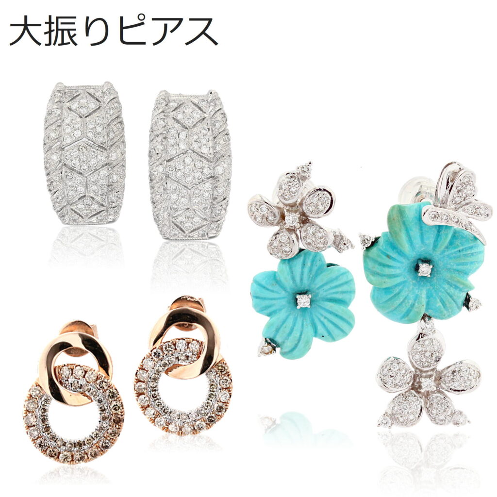 デザインによって、シンプルなコーディネートからパーティシーンまで幅広く活躍するデザインです。ネックレスよりピアスを主役にしてあげられる存在感。耳たぶが隠れるような大振りなピアスは、耳たぶが厚い人にも最適です。