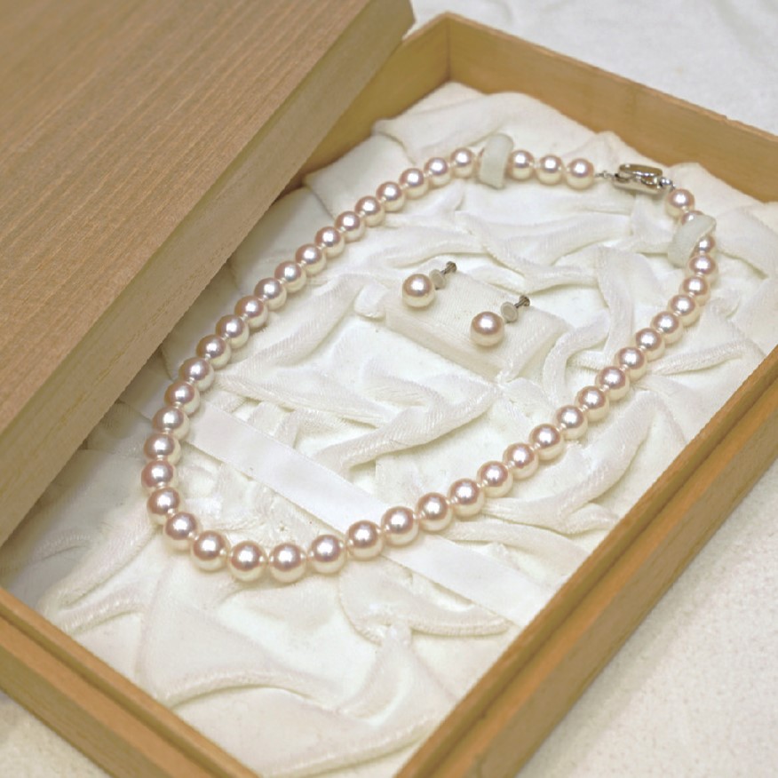 真珠の色味も大切です。ピンクがあまりに強すぎる真珠は一見きれいに見えがちですが、年を重ねてくると肌の色と一致せず、浮いたように見えることもあります。ややピンクを帯びた白か、緑味を帯びた白で、テリのよいもの、連相が整ったものがおすすめです。