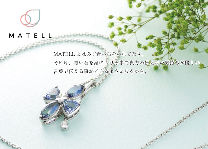 original jewelry MATELL マーテル MATELL=お母さん 伝える事が大切だから。 あなたの感謝や あなたの心 近くにいるうちに伝えてもらいたい。 MATELLには必ず青い石をいれてます。 それは、青い石を身につける事で貴方の伝えたい気持ちが優しい言葉で伝える事ができるようになるから。 オリジナルジュエリー original jewelry マーテル マカロン PRODUCTS macaron MATELL パールネックレス CENTURY オンリーユーマリッジ スタッフ SERVICE サービス Jewelry Repair 宝石修理 Jewelry Upremake アップリメイク Wathes Repair 時計修理 Original jewelry オリジナルジュエリー ONLINESHOP 〒739-0014 東広島市西条昭和町14-1 営業時間 / 10:00~19:00 082-424-1200 ONLINE SHOP