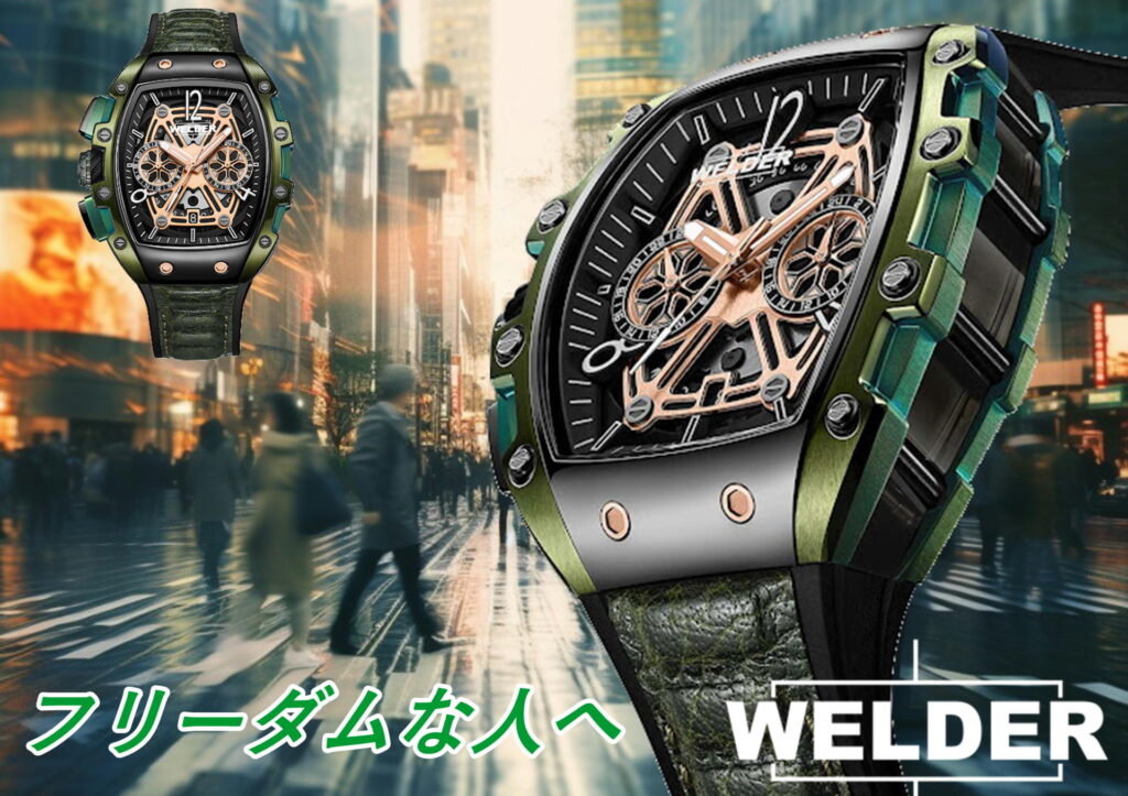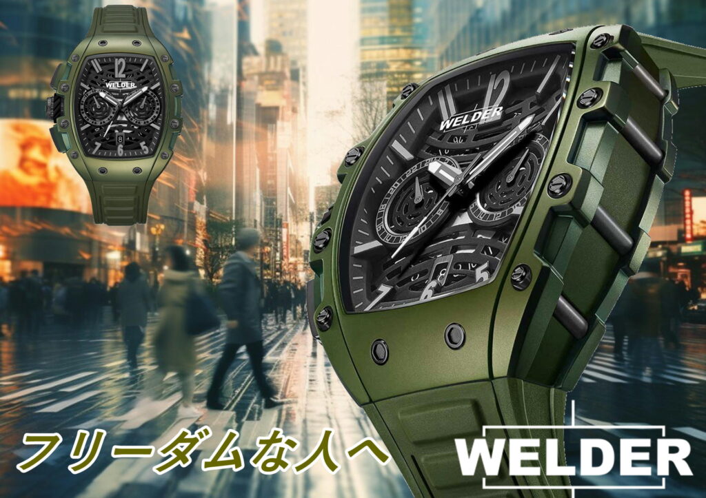 イタリアのデザインセンスと日本の精密技術が生んだ個性的なウェルダーは、年齢や性別を問わずに着用できる時計です。個性的な造形と配色はインパクト絶大。カジュアルシーンで出番が増えることでしょう。固定観念に捉われず自由に生きたい人や、人とは違うお洒落を楽しみたい人へ最適です。